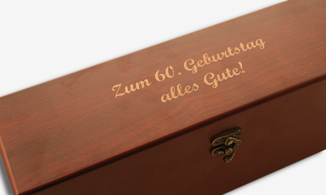 Das Angebot an Geschenkartikeln auf dem Markt ist so vielfältig wie das Material, aus dem sie gefertigt werden. Ob Vasen, Flakons, Holzbrettchen, T-Shirts, Portemonnaies, Flaschenöffner, Schatullen, Schreibsets, Steintabletts, Liebesschlösser, die am Brückengeländer angebracht werden: All diese Dinge heben sich durch eines von der Masse ab: durch eine persönliche Widmung oder ein individuelles Motiv, die mittels Lasergravur aufgebracht werden. Die Bearbeitung erfolgt hoch präzise – selbst bei detailreichen Abbildungen auf runden Oberflächen wie zum Beispiel einer Flasche.