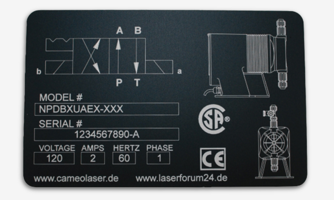 Nichts geht mehr ohne sie: Auf Typenschildern oder Etiketten steht das, was für uns von großer Wichtigkeit ist: zum Beispiel Gewichtseinheiten und Maße, Funktionsbeschreibungen oder Skizzen eines Produktes, aber auch Seriennummern oder Kennzahlen einer Maschine. All‘ diese Daten müssen so aufgebracht werden, dass sie dauerhaft identifizierbar, also kratz- und lösemittelfest sowie korrosionsbeständig sind. Genau das garantiert ein Verfahren, das Sie mit einem Laser anbieten können: Gravur.
