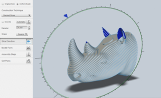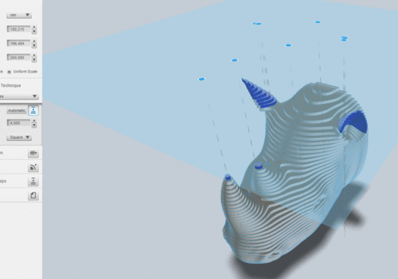 Da wir die Option „Stacked Slices“ gewählt haben, können wir nun die Dicke und Form an die Holzstifte, die wir zum Verbinden der einzelnen Ebenen benutzen wollen, anpassen. Um mehr Holzstifte einbauen zu können machen Sie einfach einen Doppelklick an der Stelle, an der Sie den zusätzlichen Stift einbringen möchten und ziehen Sie dann den blauen Punkt in die Richtung, in die das Loch gehen soll.