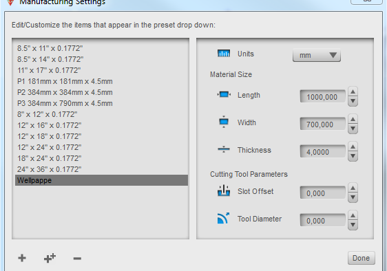 Passen Sie dann die Manufacturing Settings Ihrem vorliegenden Material an. Als nächstes können Sie festlegen, wie groß Ihr Modell werden soll. In unserem Beispiel haben wir die Länge des Modells auf 200 mm eingestellt.