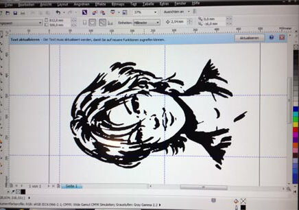 Anschließend erstellen Sie eine Schablonen-Kontur-Datei, hier z.B. einer jungen Frau in CorelDRAW. (Bild Nr. 2)