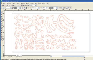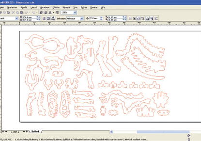 In diesem Beispiel wurde ein Epilog Mini 24 Lasergraviersystem mit 35 Watt verwendet. Öffnen Sie zunächst die „Dinosaurier.cdr“-Datei. Fügen Sie bei Bedarf Texte und Designs in die Vorlage ein. Um einen durchgehend sauberen Schnitt zu bekommen, ist es ratsam das Acrylglas hochzulegen. Hierfür ist der Pin-Schneidetisch sehr geeignet. Hier wird beim Schneiden das Lasergut festgehalten, fällt nicht nach unten und der Laserstrahl geht dabei nach unten in den leeren Raum.