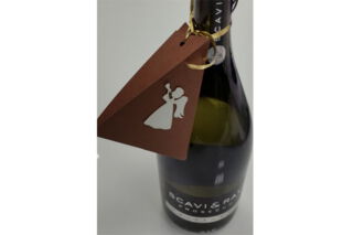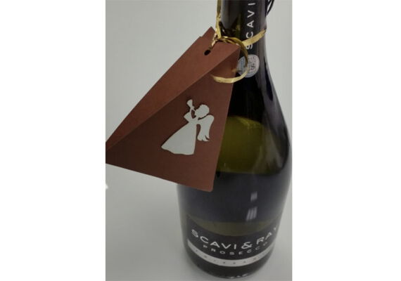 Nun kleben Sie die silbernen Verzierungen mit einem Klebestift auf die braune Pappe und klappen die Pappe an den Nähten zusammen. Als letztes befestigen Sie mit dem Geschenkband die Geschenkschachtel an z. B. eine Sektflasche…
