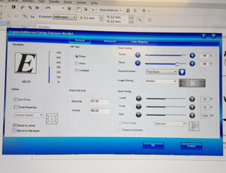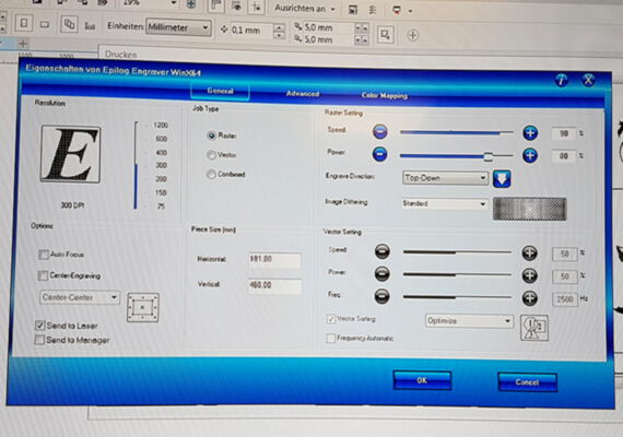 Die Einstellungen können je nach Lasersystem variieren. Die Laserparameter für Ihr Lasergraviersystem entnehmen Sie bitte Ihrem Handbuch oder Ihrer Laserwertetabelle.