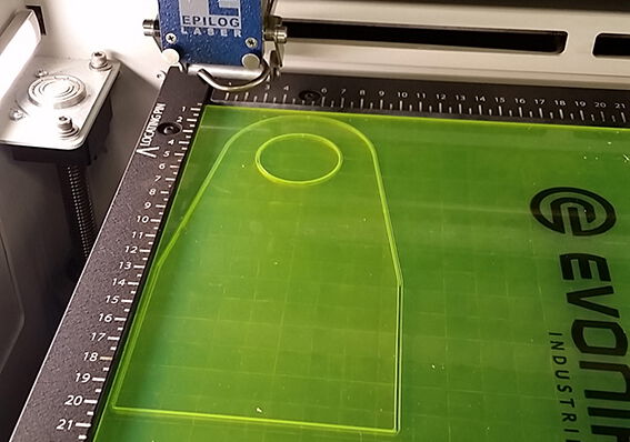 Wir haben ein Epilog Zing 24 Lasergraviersystem mit 30 Watt benutzt.