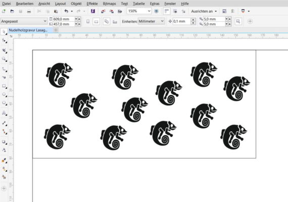 Raster: Geschwindigkeit: 27 %, Leistung: 60 %, DPI: 400