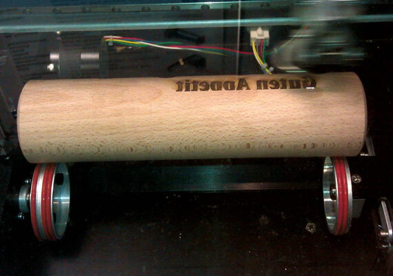 Platzieren Sie das Nudelholz in der Rundgraviereinrichtung in Ihrem Epilog Lasersystem.