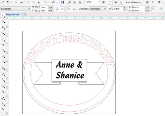 Öffnen Sie die Dateivorlage und passen Sie die Vorlage nach Ihren Wünschen an. Legen Sie das Esspapier ein und schon kann es losgehen. Wir empfehlen, auf den Verzehr zu verzichten und das fertige Esspapier nur als Dekoration zu verwenden.