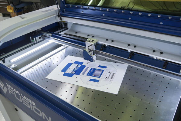 „Ob filigrane Muster, detailreiche Motive oder kleinste Schriftzüge: Alles das, was ein Digitaldrucker aufbringen kann, erledigt der Fusion M2 auch – und zwar schneller und präziser“, sagt Kurt Verhoeven, Vertriebsleiter der cameo Laser Franz Hagemann GmbH in den Beneluxländern. Auf der diesjährigen FESPA Digital vom 8. bis 11. März in Amsterdam zeigt er mit seinem Team an Stand H 10 in Halle 1: Das System leistet noch viel mehr. Schilder, Displays, Papierboxen oder Werbeflächen aus unterschiedlichsten Materialien werden mit der neuesten Lasergeneration des marktführenden Herstellers Epilog/ USA in einem Job beschriftet und ohne Musterabweichungen zugeschnitten. „Für diesen Zugewinn an Qualität steht das neuartige Kamerasystem eView, mit dem der Fusion M2 ausgestattet ist. Wie es funktioniert, demonstrieren wir den Messebesuchern an verschiedenen Produkten“, erklärt der cameo-Mitarbeiter, dessen Unternehmen den Laser exklusiv in Deutschland, Holland, Belgien und Österreich vertreibt. Was jedem sofort auffallen wird: Im Fusion M2 sind drei Kameras installiert – eine im Laserkopf und zwei im Gehäuse des Lasers. Diese erfassen das gesamte Bearbeitungsfeld der Maschine. Das zu bearbeitende Material wird automatisch im Laser erkannt, indem Passermarken innerhalb kürzester Zeit erfasst und gelesen sowie mit den in der Originaldatei festgeschriebenen vorgesehenen Positionen verglichen werden. „Ungenauigkeiten passt das Gerät automatisch an. Damit lassen sich nicht nur bessere Arbeitsergebnisse erzielen, sondern auch Produktionszeiten beschleunigen“, so Kurt Verhoeven weiter.