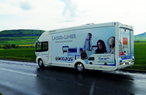 cameo Laser kommt jetzt auch auf Hausbesuch: mit einem mobilen Kompetenz-Zentrum, das wie ein Präsentationsraum ausgestattet ist. Im Laser-Liner finden kostenlose Vorführungen statt. Zudem können die ausgestellten Geräte vor Ort getestet werden.