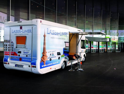 Auf der viscom 2020 vom 7. bis 9. Januar in Düsseldorf präsentiert das Unternehmen den cameo Laser-Liner: ein mobiler Präsentationsraum für Laserberatung bei Interessenten vor Ort.