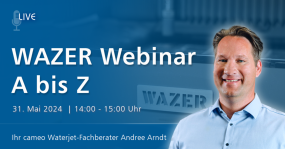 Willkommen zur Enthüllung der Zukunft des Schneidens mit dem WAZER Waterjet! Erfahren Sie in unserem Webinar alles über diese revolutionäre Technologie, die von A bis Z neue Maßstäbe setzt. Tauchen Sie ein in eine Welt der Präzision und Vielseitigkeit, und entdecken Sie, wie der WAZER Ihr Unternehmen transformieren kann.