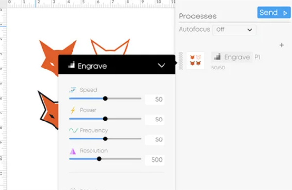 - Jetzt gravieren! Senden Sie den Auftrag an den Laser und starten Sie den Vorgang