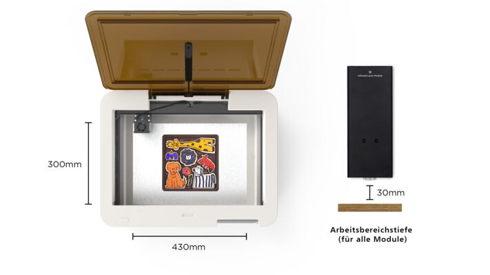 Ador bietet einen großen Arbeitsbereich von 430 mm x 300 mm mit einer Tiefe von 30 mm, der die Grenzen Ihrer Kreativität erweitert.