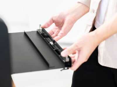 Einfach zweimal tippen und der Tisch fährt automatisch auf die optimale Arbeitshöhe.
