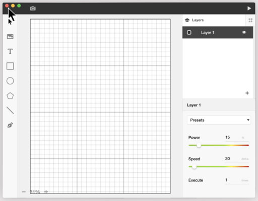 Jedes Material erfordert andere Leistungs- und Geschwindigkeitsparameter, um mit mehreren Durchgängen zu gravieren oder zu schneiden. Beam Studio wird mit Voreinstellungen ausgeliefert, die auf Ihrem Material basieren, um das gewünschte Ergebnis zu erzielen. Fortgeschrittene Benutzer können die Voreinstellungen nach Ihren Wünschen ändern und speichern.