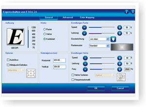 Druckertreiber (Dashboard): Laser-Parameter wählen, alternativ steht Ihnen eine umfangreiche Datenbank mit Voreinstellungen für viele Materialien zur Verfügung.