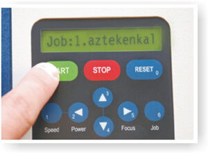 Wählen Sie am Laser die Datei, legen Sie das Gravier-Material ein, schließen Sie die Klappe und drücken Sie auf “Start”. Ihr Laser erledigt nun den Rest!