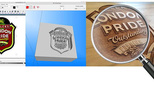 3D-Vorschau - verschafft visuellen Eindruck von der Ausgabe am Laser, kann dadurch helfen, die Tiefe der Gravur zu ändern und zu bestimmen.