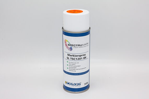 Spectrumark® Markierspray SL TSC1201 BK liefert dauerhafte und sehr kontrastreiche Markierungen auf Edelstahl, Messing, Kupfer, Titan, nicht anodisiertem Aluminium, Nickel und anderen Metallen und ist dabei einfach und sauber aufzusprühen. Überschüssiges Spray kann problemlos abgewischt werden. Spectrumark® ist damit eine echte und kostengünstige Alternative zu bekannten Lasermarkierhilfen.
