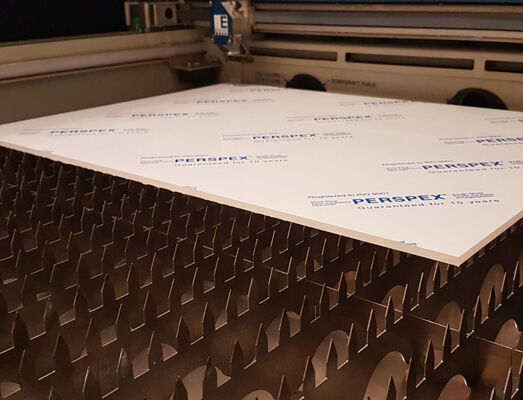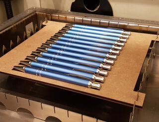 Der multifunktionelle Schneidtisch „fix&cut“ wurde entwickelt, um das Schneiden von unterschiedlichsten Materialien möglichst reflektionsfrei zu gestalten und damit für saubere Schnittkanten zu sorgen. Das Modulsystem besteht aus einem Anschlagrahmen, für den der Laseranwender die Anzahl und die Position einzelner Streben zur Fixierung des Werkstückes selbst bestimmt. Durch die flexibel anbringbaren Streben können so wenig Kontaktpunkte mit dem Material wie nötig gewählt werden. Diese Kontaktpunkte lassen sich mit Hilfe eines Punktgitters in fast jeder Grafiksoftware angezeigen. Dadurch ist es möglich Grafikobjekte so zu positionieren, dass alle Kontaktpunkte umgangen werden. Zudem reduzieren Edelstahldreiecke mit ungleichen Schenkeln als Halterung auf den Streben die Berührung mit dem Material auf ein Minimum und leiten den Laserstrahl gleichzeitig nach unten ab. Durch eine Eloxierung der Ausschubplatte wird die Reflektion des Laserstrahls nahezu komplett verhindert. Der Gewinn: Reflektionsfreiheit spart in erster Linie Kosten durch weniger Ausschuss und den Wegfall von Nachbearbeiten der Werkstücke.