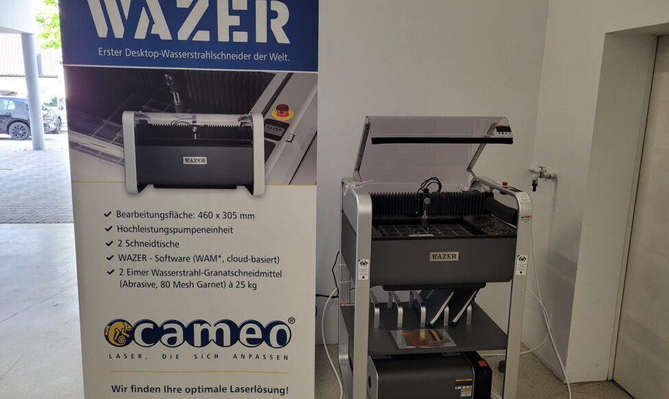 Zusätzlich bieten wir den innovativen WAZER an, den ersten Desktop-Wasserstrahlschneider der Welt. Mit der gebündelten Kraft des Wasserstrahls, Sandpartikeln (Abrasive) und digitaler Präzision schneidet der WAZER weiche und harte Werkstücke, darunter Gummi, Silikone, ABS, Kunststoffe, Glasfaser, Glas, Carbon, Keramik sowie Aluminium, Messing und Edelstahl.
